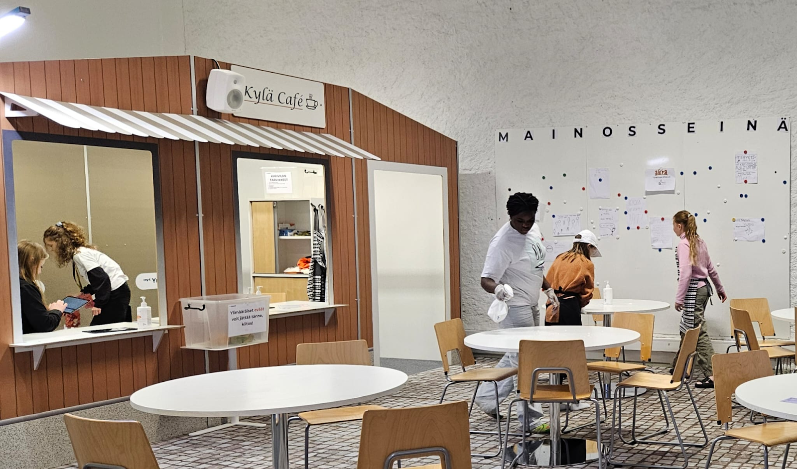 Ykköset ja kutoset puolestaan askartelivat yhdessä. Kutosen kummit olivat aiemmin harjoitelleet, miten tehdään talvimaisemaa esittävä pienoismalli. Sitten he ohjasivat pienryhmissä omia kummioppilaitaan tekemään ikiomat pienismallit. Kylläpä opettajien kelpasi saapastella toimettomina, kun homma hoitui leppoisasti lasten kesken.
